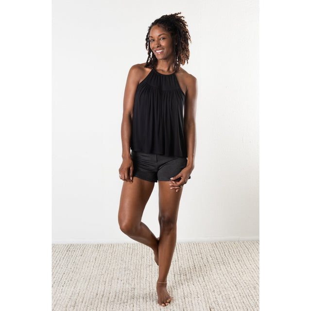 This is the suitcase solution. You will do everything in this halter design - travel, lounge, sleep and, of course, look effortlessly chic. The Light Hug® inside shelf with carefully positioned shirring means modesty with no foam pads or bulky insert. Made in breathable Tencel™ Modal with a buttery feel. It does not lift or enhance, fitting loose and free. As comfy on a red eye as it is on date night.